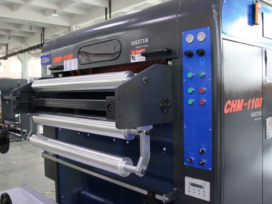 CHM Machinery's main products is a computerized high-precision single rotray sheeter, designed specifically for paper mills, paper distributors, and printing houses. It improves slitting capacity and ensures quality. This single-drum sheeter features a "Top blade rotary, bottom blade fixed" flying shear design. During paper transport, the lower blade remains stationary while the upper blade rotates continuously at high speed. This machine handles paper sizes from 60 to 550 gsm.